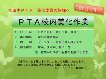 美化委員の皆様、よろしくお願いいたします。
