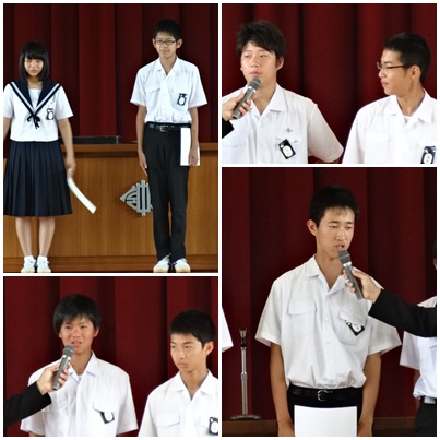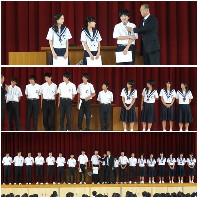 朝会の前に、表彰伝達を行いました。表彰された生徒は以下の通りです。おめでとうございます!