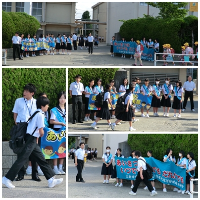 今朝は女子卓球部の皆さんが、あいさつ運動に取り組んでくれました。卓球ガールズのあいさつも素晴らしいのですが、教育実習生の小川先生のあいさつは手本として申し分なし。