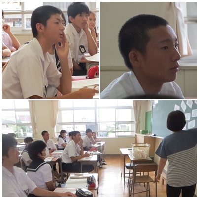 6組は数学の√計算をしています。5組は社会の授業です。どの生徒も真剣な表情で新しい学習内容に取り組めてよい雰囲気が流れていました。