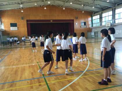 1年生石坂さん、2年生の先輩たちに教えてもらいながら動きを確認中。この後「さっき教えてもらったことを復習してもいいですか。」と1年生同士で自主練習。意識が高くて感動です。
