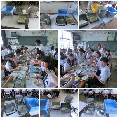 今日の給食、冷やし中華麺、つくね、ゴーヤチップス、牛乳の全てを、全てのクラスが食べきりました!