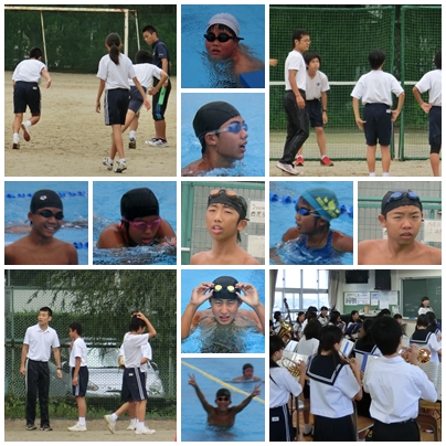 途中で雨が降ってきました。そんな中でも、水泳部は明日の大会に向けて調整していました。