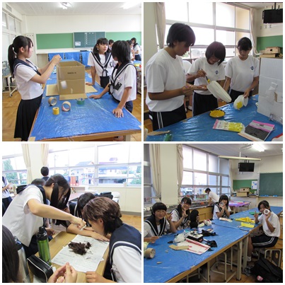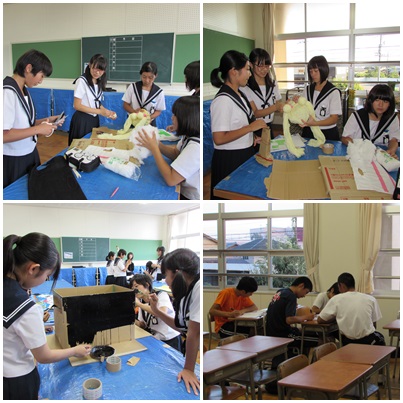 学年競遊「ムカデ競争」のコスチュームづくり。リアリティーを追求した作品を、手先を起用に動かしてつくっていました。また、部活終了後の駅伝練習までの間、受験勉強にいそしむ姿も見られました。