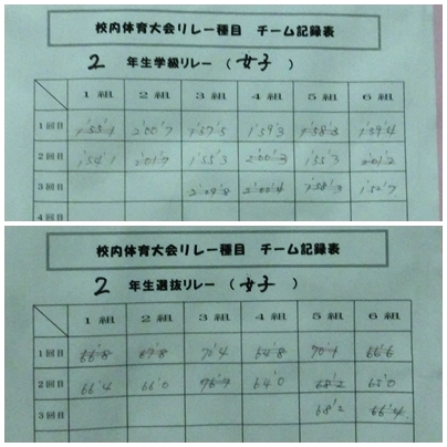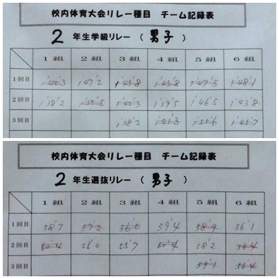 リレー計測の記録は、学年の掲示板に毎回張り出せれています。