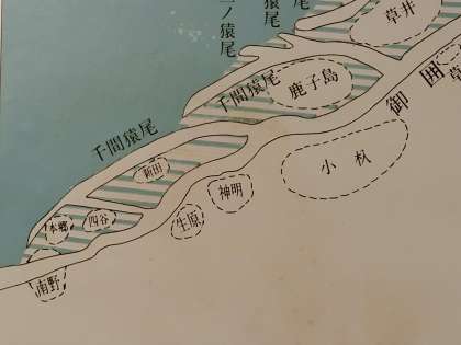 お囲い堤の外に取り残された村の人々は必死です。「猿尾」と呼ばれる小堤防を、村人たちで作りました。今でも面影を残しています。
