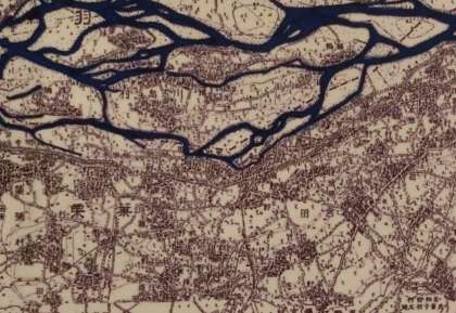 古くの木曽川は、平野に出ると一の枝、二の枝、三の枝を分流し、自由に乱流していました。