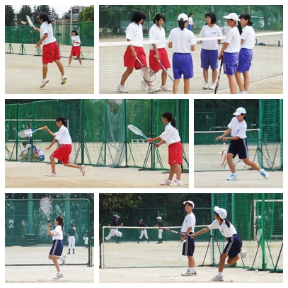 宮中2年生は、徐々にサーブレシーブも安定し、コースをつくこともできるようになってきました。しかし、前衛の守備範囲やボレーの決定力が弱く、なかなか前衛がポイントすることができませんでした。また、ポジションなどのイージーミスも少なくありませんでした。ただ、プレーの面でも気持ちの面でも、粘り強さが出てきました。秋の大会で、実力が発揮できるよう、頑張りたいです。