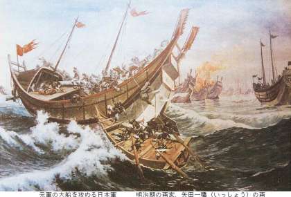 文永の役と弘安の役です。この2度にわたる元寇で元軍に大損害を与えたのはもちろん勇敢な日本軍でもあるのですが、暴風雨(台風)にも助けられた話は有名です。その時の鎌倉幕府執権は北条時宗です。その時だから時宗なんです。(おやじギャグかよ)
