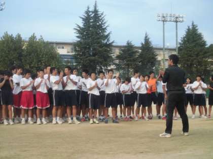 今日の夕方の駅伝練習は少し寒ささえ感じました。秋の深まりが例年より、やはり早いのでしょうか。今日は計測を行いました。練習後、新美先生が熱く語っているところです。ここが思い出に残る言葉をよく見つける場所なんです。(校長)
