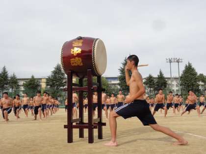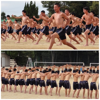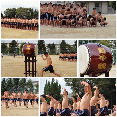今日は本番と一緒の格好で練習してみました。最後に全校みんなで円陣をくみ、心を一つにしました。みなさん、10時50分です。観に来てください。