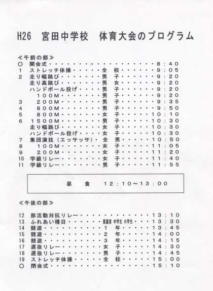 プログラムは紙面ですでに各家庭に配付させていただきましたが、HPでも載せさせていただきます。