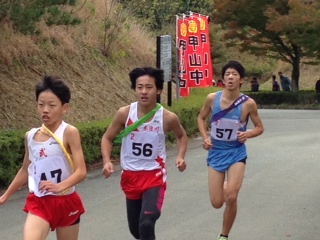 2区、小澤君にタスキが渡りました。現在、41位ぐらいです。混み混みです。男子も今のところ古知野中がトップです。