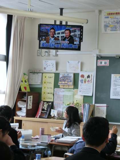「おなちゅう」を給食時にみんなで観ました。多くの生徒がすでに観ており、いかに興味があったかがわかります。