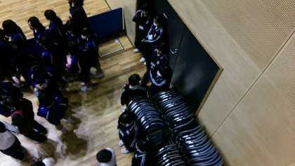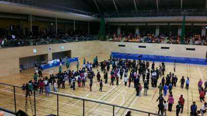 ただいまから開会式です。補助審判員の生徒もスタンバイ中です。