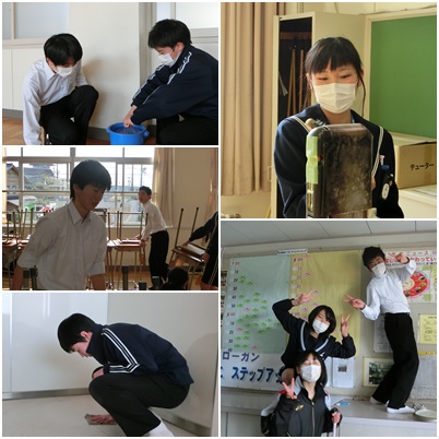 掃除の時間、校舎内を歩いてみると、多くの生徒が頑張って掃除をしていました。冷たい水で水拭きをしていた生徒もいます。「ありがとう」と思わず声が出ます。