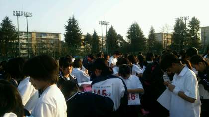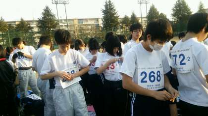 ゼッケンと荷物袋を配付しました。