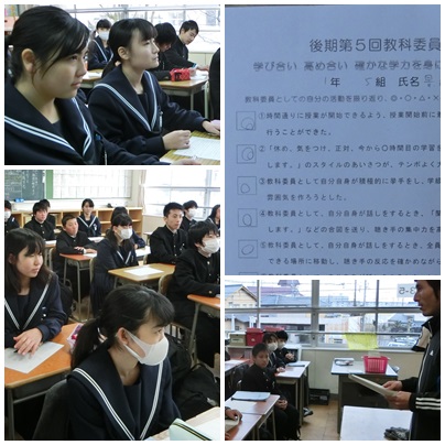 今日は45分授業で、6限後、全員の生徒が委員会に参加しました。委員会活動は専門員会と教科委員会とがあります。プリントに取り組み状況の自己反省欄があり、○印を打ったり、反省・課題を書いたりします。
