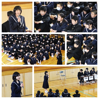 誰の指示もありませんが、発表者は、全校のみんなが見える場所にサッと移動し、原稿などを見ず、自分の言葉で、みんなの方を向いて堂々と発表することができていました。