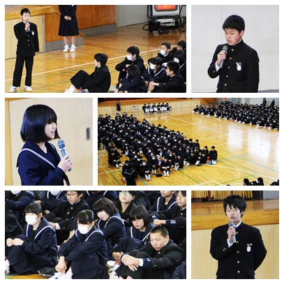 初めての全校討論会でしたが、たくさんの意見が出され、携帯電話やスマホの利用について、全校生徒一人ひとりが考えることができました。宮中生の成長を、あらためて実感できた全校討論会でした。