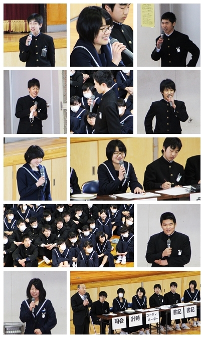 2月9日に行われた全校討論会では、発表者も聴く人も、普段の授業で行っている「宮中学びスタイル」で、話し合うことができました。