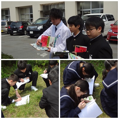 3限の2組の高浜先生による理科の授業に突撃。外に出て理科便覧を片手に植物の名前や特徴を調べたり、スケッチしたりしていました。集中して取り組んでいる横顔はかっこいいです!