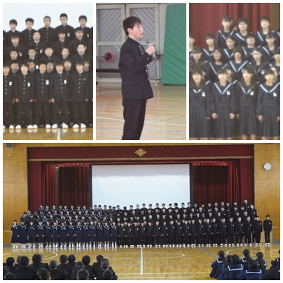 2・3年生の合唱を聴いた後、今日のお礼として1年生も合唱を披露しました。