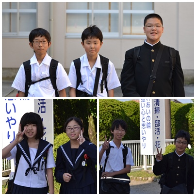 さわやかな風の中、朝日を一杯浴びて、元気に登校してきました。