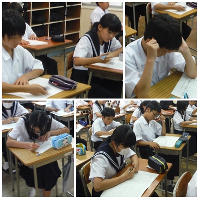教育相談アンケートは、担任の先生に自分の素直な気持ちを知ってもらうためのものです。どのクラスも真剣な表情で記入を行っていました。
