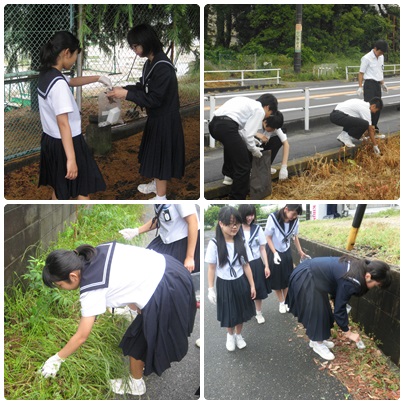 あいさつ+清掃班は、学校右周り、ピナ方面、宮小方面、ファミマ方面、西門に分かれてたくさんのゴミを拾うことができ、この1日でまた一歩自分たちの手で地域をキレイにすることができました。