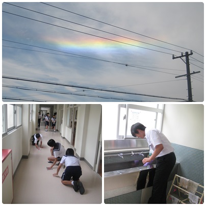 今日の清掃の時間に窓から空を見上げると、西の空にきれいな虹が出ていました。緊張感のあったテストが終わった後のすっきりとした生徒の気持ちが表れたかのような虹でした。
