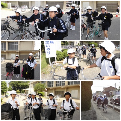 1年生は本日、江南郷土学習です。続々と出発しています。