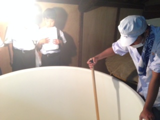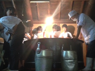 勲碧酒造ではお酒をしぼるところを見学させていただいていました。明日にはしぼり終わってしまい、しぼっているところを見られるのは珍しくとてもラッキーでした!