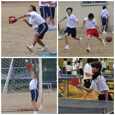 外の部は、途中で雨が強く降り始め、早めに終了しました。室内や体育館の部は1年生、2年生がゆとりをもって場所や道具を使えるので、特に1年生は生き生きと活動していました。
