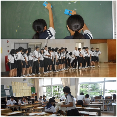 ・授業後、クラスの米原さんと田中さんが黒板を消していました!心が優しいです!