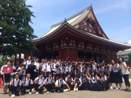 浅草寺で記念撮影。