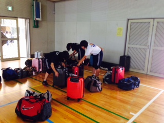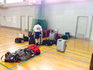 修学旅行から帰ってくる3年生のために荷物を男女別、出席番号順に並べ替えました。少しでも早く帰着式が終わり、家でゆっくりしてください。