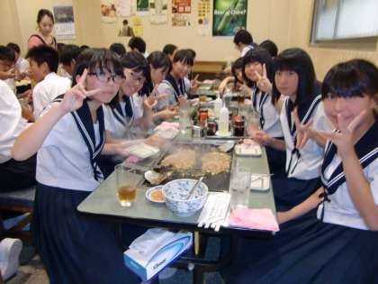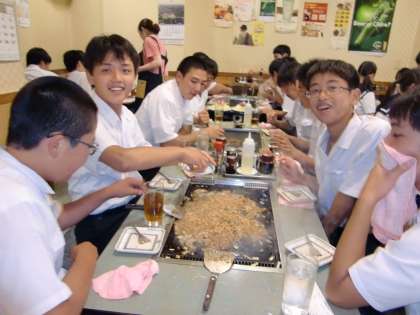 学級分散・昼食でのもんじゃ焼きは、いろんな味を食べました。