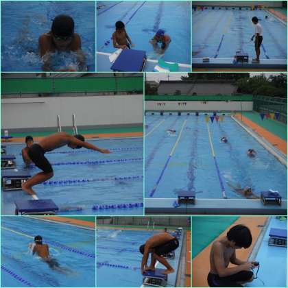 今日は午後練習の前あたりから雨が降り出しました。が、しかーし、水泳部はなんのその!今日も泳いでます☆帰りのSTが終わり1番にプールに来た足立さん、いいですね〜。また、毎日朝練1番乗りの尾関君、その姿勢、いいですよ。