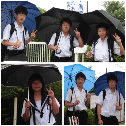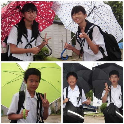 今朝も雨で薄暗い天気です。7時に部活動へ急ぐみなさんに協力をお願いしました。