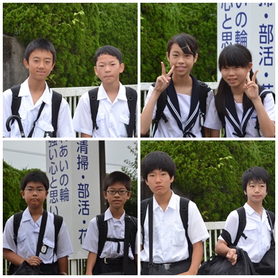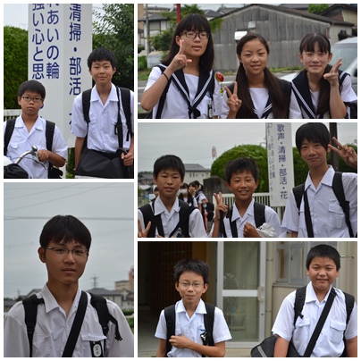 今朝も部活動の前、7月なのに肌寒い天候の中、登校中の「笑顔」に協力してもらいました。
