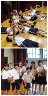最後の写真は、1年生と同じくステージ上で練習していた女子バスケ部1年生です。いつも元気よく挨拶し、練習にも熱心に取り組んでいます。
