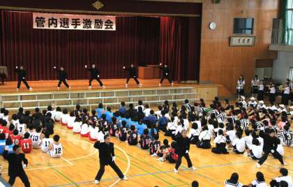 明日、7月9日(木)14時より本校体育館にて、下記のように「管内大会選手激励会」を行います。