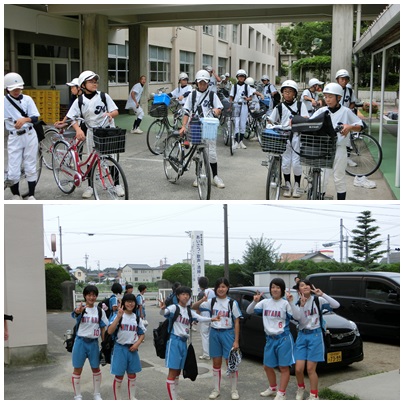 野球部、テニス部、ソフト部、バスケット部男子、水泳部が出発していきました。野球部は自分たちだけでキャプテンを中心に集まり、円陣を組み何か話し合っていました。「勝って帰ってこよう」など話していたんでしょうか。今日は試合のないバレー部女子が遠くからみんなで見つめていました。彼女たちの気持ち、野球部のみんなの気持ちが手に取るようにわかり、朝から感動させていただきました。