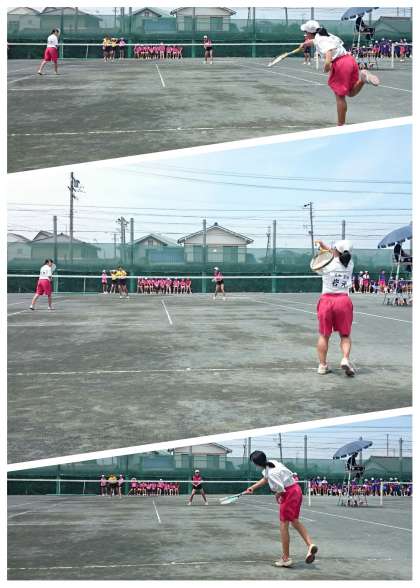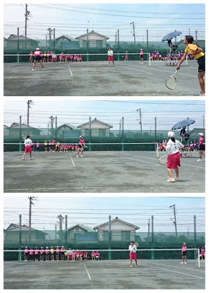 サーブも入り、コースを攻めるテニスができ、デュースが続くなど粘り強いテニスをすることができました。結果は、1×3で惜しくも敗れてしまいましたが、思わず応援したくなる、いいテニスができました。