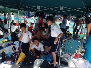 水泳大会は江南市民体育館で行われています。古田君は県標準記録を切ったようです!