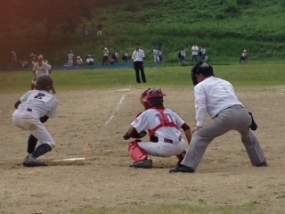 3回裏、石黒くんが四球を選び、パスボールなのでホームインにつなげました。3回終わり5対2です。