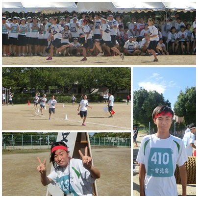 台風18号の関係で高校の体育大会が日程変更になり本日はなんと体育大会の高校の多いことでしょう。今年もホームページに載せ紹介させていただきます。高校選びの参考になればと思います。公平を期すために各校2枚の写真でいきます。