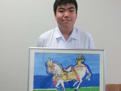 本校の佐々陽太君も「祭り」(写真)という力作を出品します。何でもこの絵画は外国も回ってきたという話です。佐々君の成長にエールを送りたいと思います。