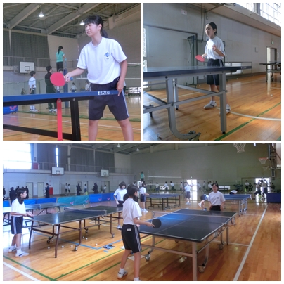 来週の市大会に向けて、基本と試合形式の練習を行いました。今日は2年生が少なかったため、1・2年合同でラリーをしたり、ダブルスでは、ラリーの回数を数えながら、つなぐ意識を高めました。来週は体育大会があり、体を動かす機会が多くなります。コンディション調整も意識して、最高のパフォーマンスが見られることを期待しています。